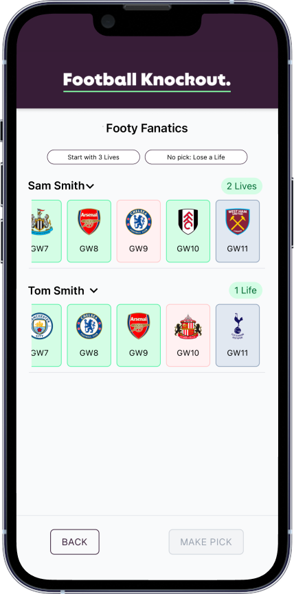 Create and join a league, make your picks, and track who’s still standing all in one place. No spreadsheets, no hassle, just pure competition.